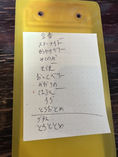 お店の方が書いてくれたいちごの品種です。